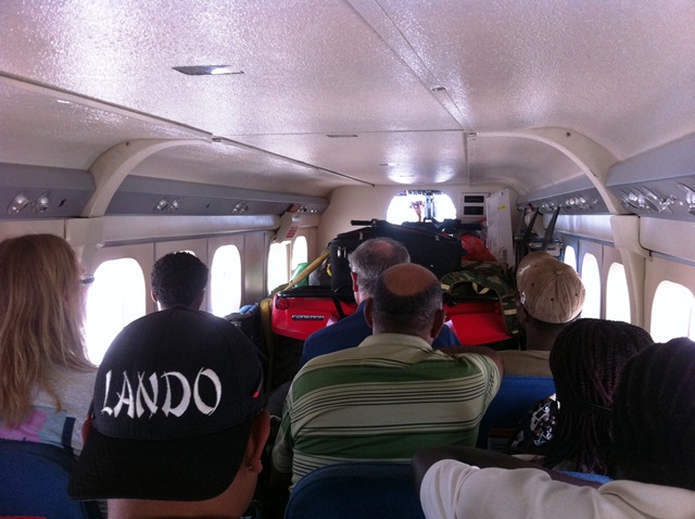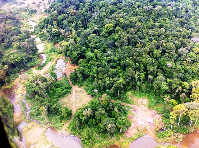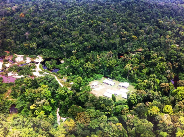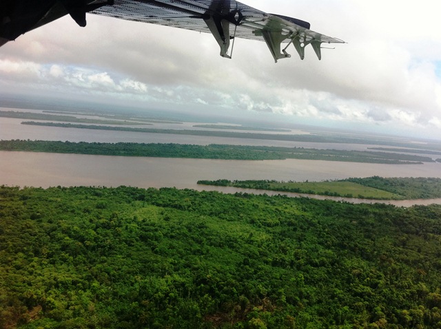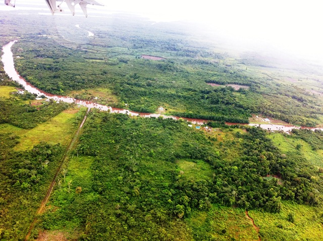 Flying over Reunion Camp in Matthews Ridge on the way to land