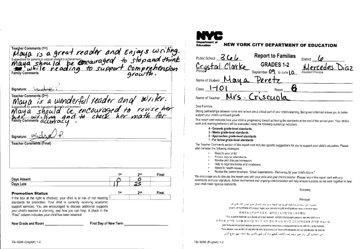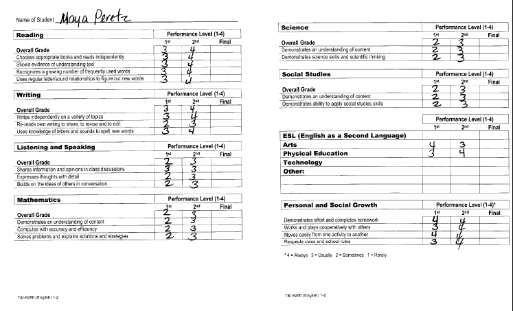 First grade report card