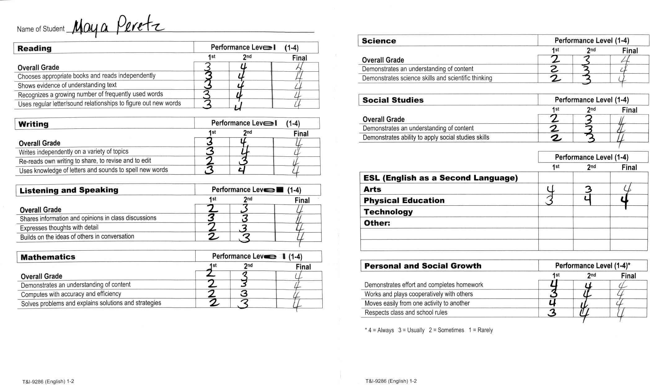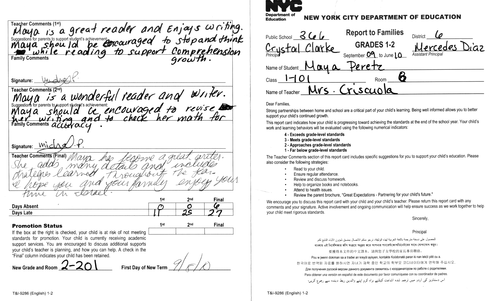 First grade final report card